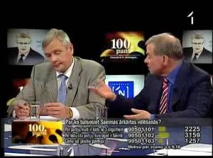 Vakardienas LTV1 100.pants ar vairāku Latvijas politisko līderu, to skaitā viena oligarha (Aivara Lemberga) piedalīšanos atkārtoti parādīja ne tikai Lemberga komunikatora talantu, bet arī stūrī iedzīta un tūlīt nomedīta zvēra reakciju uz ne tik labi apbruņotiem un ne tik agresīviem medniekiem, t.i., politiskajiem oponentiem un raidījuma vadītājiem.