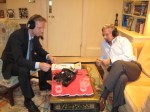 Pret Šaha pasaules apvienības vadītāju un bijušo Kalmikijas prezidentu Kirsanu Iljumzjinovu. Starp citu, Kadafi pretspēlētājs nav nekāds nīkulis, viņš 1979. gadā, savā Maskavas dzīvoklī ir sastapis citplanētiešus! Lūk tā!
