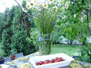Brišana caur garu, garu zāli pēc kalmēm ir jau notikusi. Saule jau sildījusi slīpiem zariem, vīgrieži saziedējuši kā traki. Pirms tam meijas un margrietas un lietus nelīst nemaz. 🙂