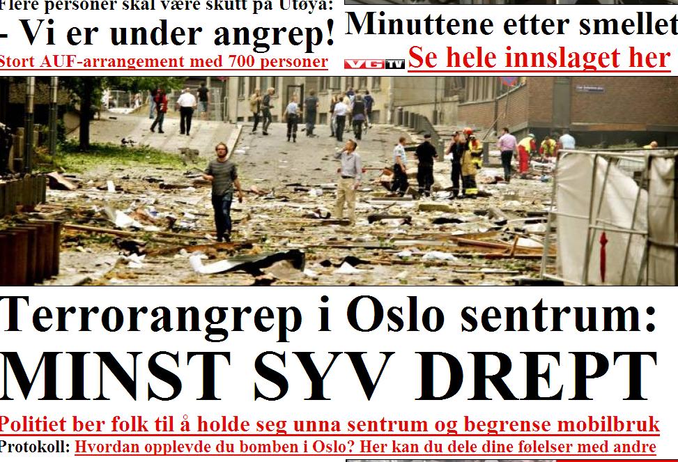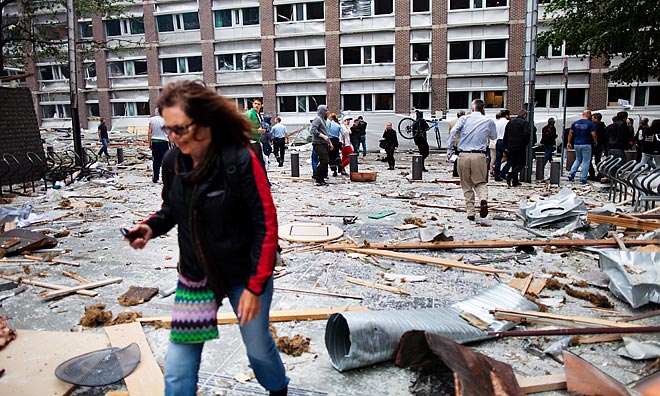 Iedzīvotāji no centra ēkām Oslo (pēc sprādzieniem) joprojām ir evakuēti (ieskaitot Aftenposten redakciju), policija aicina iedzīvotājus iespējami maz izmantot mobilos telefonus.