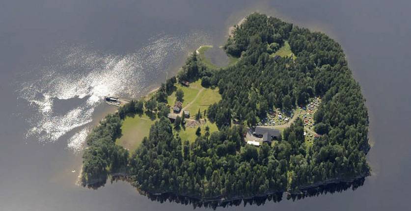 560 jauniešu un bērnu piedalījās vasaras nometnē šajā salā, netālu no Oslo. Par policistu pārģērbies noziedznieks, apmērām stundu pēc sprādziena Oslo, uzsāka šaut uz bērniem. 84 no ievainojumiem šodien jau miruši. Slepkava šāvis sistemātiski un augstasinīgi (stāsta aculiecinieki) – kā filmā vai datorspēlē. Vairaki bērni mēģinājuši bēgt peldus projām no salas, taču slepkava apšāvis arī visus peldošos.