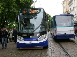 Notikumi šodien sākās jau pie tramvaja pieturas, iepretī Alfas centram.