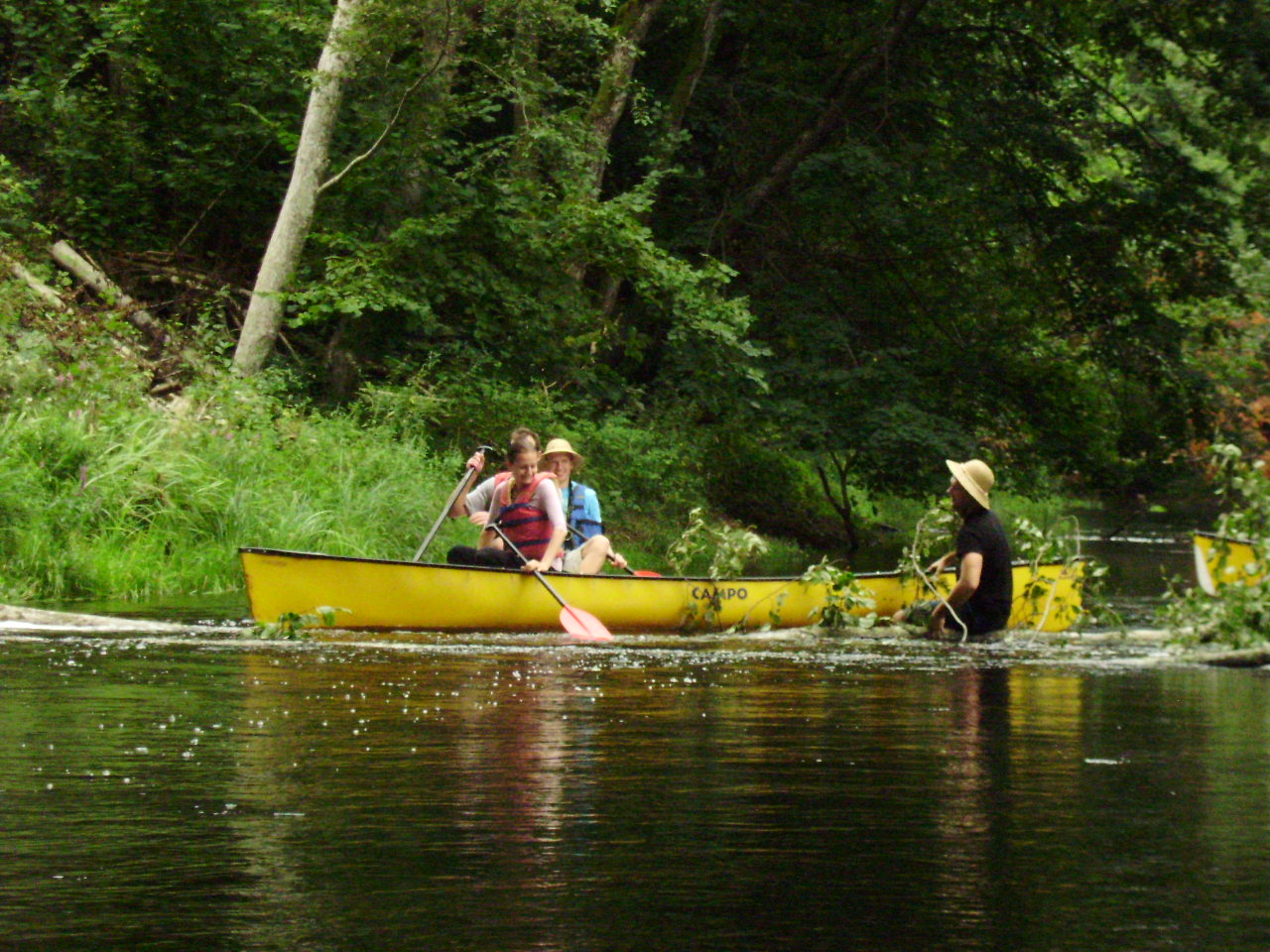 Stūrēju, pēc tam nesu (apkārt dzirnavām) un viņā pusē golgāta turpinājās. Zari, stumbri, barjeras, pāris bebru, dusmīgas, iztraucētas pīles, lietus, piparmētru smarža gar krastiem un visbeidzot…pamatīgs blīkšķis un trieciens pret Kaspara laivu, kas pēkšņi bija iznirusi aiz līkuma.
