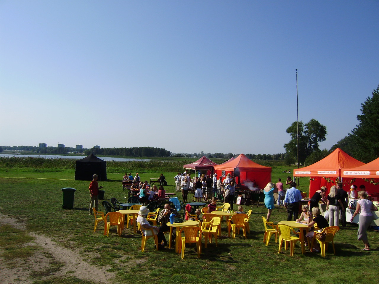 Tad pēkšņi uzbrāžas ezera vējš, kas ar savu jaudu pārsteidz pat labi ķemmētas tirgotājas (acīmredzot pirmais orkāna Irēne priekšvēstnesis šodien Latvijā) un es pēkšņi ieraugu reti sakarīgu ekspozīciju ar nosaukumu – ” Interesanti un stilīgi suvenīri visai Latvijai”.
