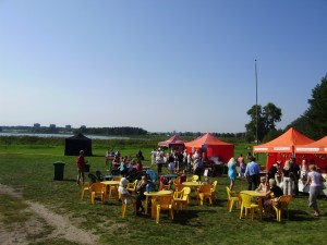 Brienu pa zāli tālāk gar pārdevēju rindām.