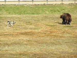 Kas zina, varbūt atčāpos atpakaļ? ”Sunīšu spēlēšana” ar kaķiem būs lācim iepatikusies. Viņš atgriezīsies.