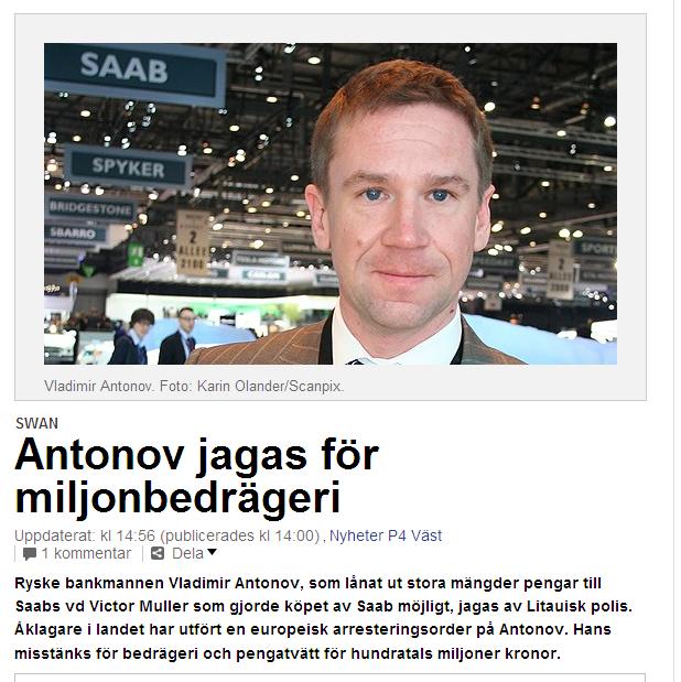 - Antonovs, kurš aizdevis naudu SAAB direktoram Milleram, izsludināts Interpola starptautiskā meklēšanā . Viņš tiek turēts aizdomās par naudas atmazgāšanu un krāpniecību.