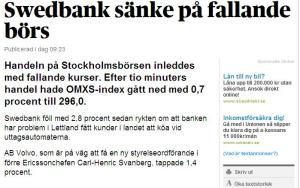 Tie, kas seko notikumiem Stokholmas fondu biržā droši vien paredzēja, ka Latvijā cirkulējošās baumas nonāks arī līdz Zviedrijai un šorīt tās iesitīs arī par Swedbank un SEB bankas akciju kursu biržā.