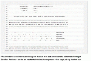 Ziemassvētku uzbrukums Stratfor trāpījis arī zviedru drošībniekiem – FRA, Ericsson un Folkes Bernadota Akadēmijai, kas arī bija Stratfora klienti.