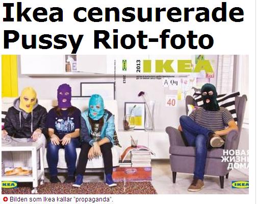 Zviedru mēbeļu gigants Ikea tiek Zviedrijā kritizēts, ka tas pakļāvies politiskam spiedienam Krievijā un no savas mājas lapas Krievijā izņēmis kādu fotoattēlu, kurā redzami notiesātās pankroka grupas Pussy Riot tēli.