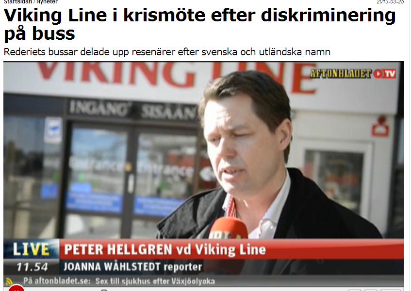 Tikko Zviedriju pāršalca skandāls par notikumiem galvaspilsētas centrālajā autoostā. Šoferis, kuram bija pienākums transportēt pasažierus uz Ekero līnijas prāmi (ceļā uz Ālandu salām), šķiroja pasažierus divās grupās: vietējos un imigrantos. Vienā autobusā tika sašķiroti etniskie zviedri un otrajā imigranti. Kā viņš to darīja? Pavisam vienkārši – to uzreiz varot redzēt. No skata. Acenes vai dokumentus viņam nevajagot. Vai tas ir ētiski, vai tā drīkst demokrātiskā sabiedrībā? Protams, nedrīkst. Protams, nav ētiski. Loģiski, ka šoferis esot tikko atlaists no darba un vairāk tur nestrādāšot, taču nav izslēgts, ka savā nākamajā autobusā viņš atkal sāks šķirot zviedrus pa labi un pārējos pa kreisi. Personas kods, tieši tāpat kā akcents svešvalodā nosaka, vai esat vai neesat vietējais.
