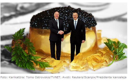 Latvijas prezidenta runa Baku pilī pagājušajā nedēļā liecināja, ka kaviāra kārbas, ko droši vien dāvanās no Alijeva saņēma Latvijas prezidents un viņa ministru svīta, ir likušas klusēt par cilvēktiesībām, par brīvu un nekorumpētu biznesa vidi, kas Latvijas uzņēmējiem darbojoties šajā valstī patiešām ir vajadzīgas. Ja reiz mūsu Prezidents tiešām ir tā norūpējies par Latvijas ekonomisku attiecību veicināšanu ar šo valsti, tad PSRS laika leksika 2013. gada tekstos vairs neiederas. Mūsu Bērziņa runā Baku izskanēja suminājumi tautu draudzībai, bez neviena mājiena Eiropas un brīvās Latvijas demokrātijas vērtību virzienā. «Es paceļu šo glāzi par Latvijas un Azerbaidžānas sadarbības gaišo nākotni! Par mūsu tautu draudzību!», lasot šos mūsu prezidenta vārdus mēs varam justies, kā iepazīstoties ar PSKP ģenerālsekretāra Leonīda Brežņeva runu padomju laikā. Te tā ir visā krāšņumā.