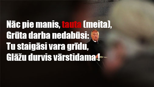 Krieviem ir paruna – «ja zibens neiespers, tad zemnieks krustu nepārmetīs». Rīgā tas beidzot ir noticis – zibens ir iespēris, bet Latvijas «atbildīgie» un «iesaistītie» joprojām «krustu nepārmet». Nekad agrāk nav gadījies novērot brīžus, kad smagas avārijas situācijā varas sviras novāc no kuģa komandtiltiņa kapteini, pat tad ja viņš ir tik vīrišķīgs un paškritisks, ka uzņemas visu vainu uz sevi. Tā tas notika ar Valdi Dombrovski. Tagad, kad mūsu kuģis ar sūci dreifē pa viļņiem vēja auru pavadībā bez kursa, mūsu siltajās telpās dzīvojošais «Kājiņu» prezidents Andris Bērziņš (kuram beidzot ir izdevies veiksmīgi aizvākt visilgāk nokalpojušo Latvijas premjeru) var enerģiski svaidīt pa labi un pa kreisi («kremlinu» stilā) sev patīkamos un nepatīkamos ministru kabineta vadītājus, izejot no savām politiskajām simpātijām, emocijām un pienākuma pret tiem, kas viņu ievēlēja šajā amatā. Manipulāciju džezs ir klāt! Beidzot Bērziņš tiek pie kloķiem, un kulisēs tikmēr diriģē šī prezidenta iecēlēji – «Ventspils govis» un «Saskaņas puikas». No malas viss izskatās kā aizraujoša videospēle. Taču upuri nav lelles vai aktieri, bet mēs – parastā tauta, kas reāli baidāmies iepirkties tuvējā lielveikalā un nezinām, kas mūs gaida neskaidrajā nākotnē, kurā atkal visu noteiks nevis vēlētāju, bet korumpētu politiķu un būvnieku politiski ekonomiskās intereses.