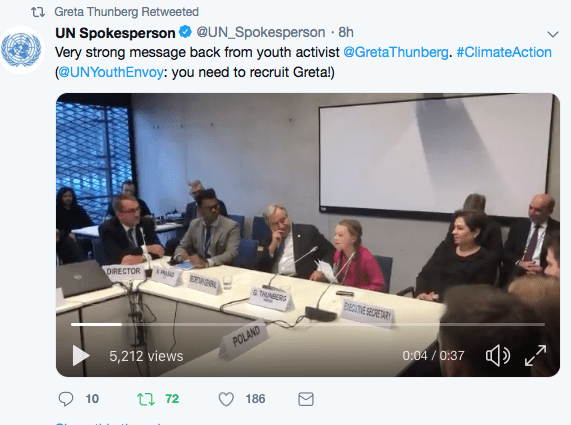 Viņu atbalstīja dažādu profesiju pārstāvji, „finanšu haizivis“ ieskaitot. Piektdienas klimata demonstrācijas ir viņas ideja, kurai daudzi pievienojās arī ārpus Zviedrijas robežām.