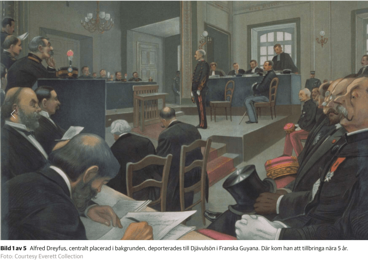Pazemošanas un izsmiešanas tradīcijas visur ir apmēram vienādas. Tās ir teatrālas un pompozas pozas un nežēlīgi sadisma mehānismi. Šajā gadījumā viss sākās militārās augstskolas kazarmu pagalmā Parīzē. Tika izveidots speciālais „ soda gaitenis“ no karavīriem, kas šī mērķa dēļ tika izsaukti uz galvaspilsētu virsnieka Dreifusa publiskai eksekūcijai. Aiz skolas žoga pūlis kliedza lozungus: „nodevējs“, „maita“, „riebeklis“ un kāds virsnieks norāva no Dreifusa mundiera pogas un apbalvojumus. Kolēģi virsnieki skandēja tekstus: „Pamēģini tagad pateikt, ka esi nevainīgs!“, „nodevējs“, „Jūda!“ Pēc tam kāds cits publiski salauza viņa zobenu. Tātad nesimpātiskās personās iznīcināšana sākas klusi ar koridora sarunām, bet publiskajā telpā izvēršas tieši tāpat kā klasiskas grieķu traģēdijā: ar zalvēm kauna staba manifestācijai. Pēc tam upuri nosūtīja pilnai soda izciešanai uz Velna salu Dienvidamerikā, Franču Gvijānā. Alfreds tur pavadīja piecus gadus. Par ko?