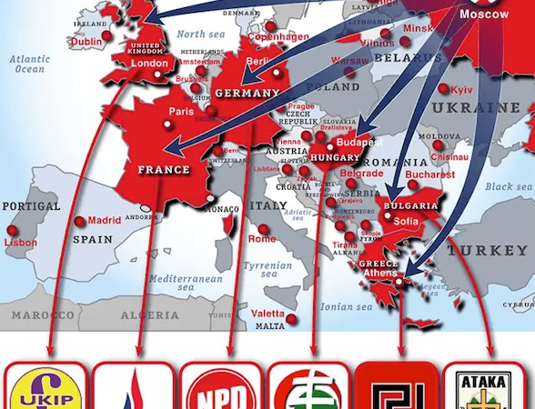 Attēlā Eiropas labējās, konservatīvās partijas ar vislielāko Krievijas ietekmi. Foto: https://www.businessinsider.com/putin-is-infiltrating-europe-2014-12?r=US&IR=T