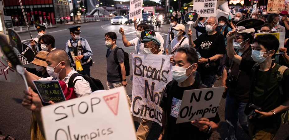 Sabiedrības protesti pret spēļu rīkošanu uzkrītoši sākās 1992.gadā, kad Amsterdama gatavojās 1992.gada olimpiādi. Pēc tam nīderlandiešiem sekoja akcijas Toronto un Berlīnē un pēdējā laikā neviena olimpisko spēļu rīkošana neiztiek bez protesta akcijām pilsētās. Šobrīd šie protesti un demonstrācijas ir jau kļuvuši starptautiski un pirms Tokijas olimpiādes ielās izgāja ne tikai japāņi, bet arī citu tautību protestētāji. Par šo tēmu ir uzrakstītas un izdodas divas jaunas grāmatas – ”NOlympians. Inside the fight against capitalist mega-sports in Los Angeles, Tokyo and beyond” (Fernwood Publishing) un “Nolympics. Tokyo 2021 in der Kritik” (Leipziger universitätsverlag).