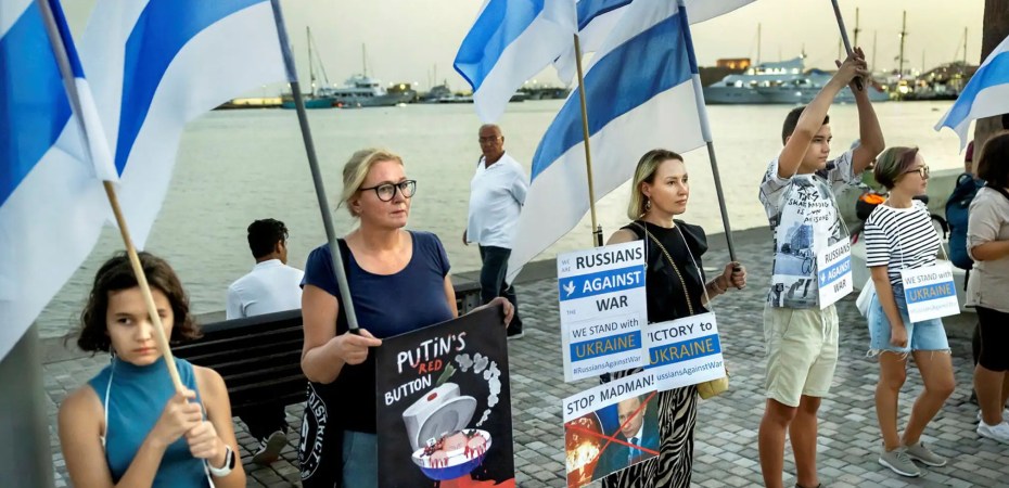 Laba ziņa ir tā, ka vairākās pasaules valstīs un pilsētās sāk izplatīties demonstrācijas ar „Pretputina karogu“ kā opozīcijas simbolu. Rādīt šo karogu Krievijā nedrīkst, par to draud sods cietumā. Kolēģis Ingmars Neveus (DN) šo karogu pirmo reizi esot redzējis demonstrācijā Kiprā. “Tas ir krievu karogs no kura nomazgātas asinis“, – apgalvoja kāds no demonstrētājiem. Neliels krievu emigrantu pulciņš šādi protestē regulāri, demonstrējot Putinu kā slepkavu un pieprasot izbeigt karu Ukrainā. Tātad izbeigt okupāciju, kuru viņu valsts iesākusi.