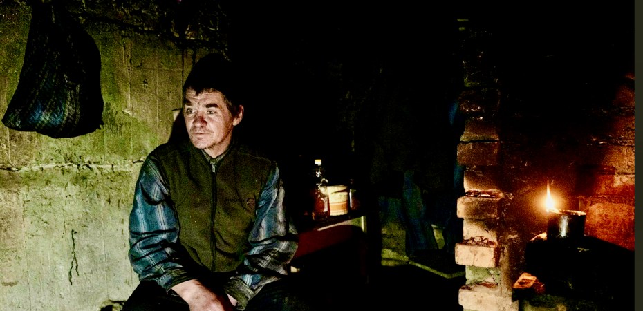 Bahmuta ir bez siltuma un ūdens jau četrus mēnešus. Pirms kara te dzīvoja 70 000, tagad apmēram 10 000 cilvēku. „Katra nama pagrabā kāds dzīvo“, – apgalvo Viktos Olemenkovs (47.g.v.). Viņš pats mitinās daudzstāvu ēkas pagrabā, savienojot divas pagraba noliktavu telpas. Tur viņš uzmūrējis plīti ar skursteni un iztiek kā nu spēj. Telpā ir plaukti ar grāmatām, traukiem, galds, krēsli un 2 gultas. Elektrības nav. Viktors iztiek ar svecēm, kuras darina pats bundžās ar saulespuķu eļļu. Deglim jābūt no kokvilnas. Vislabākās esot apavu auklas vai kokvilnas kreklu strēmeles. Plīts jākurina divas reizes dienā. Visbiežāk tiekot vārīts borščs. Evakuēties viņš nevēlas.