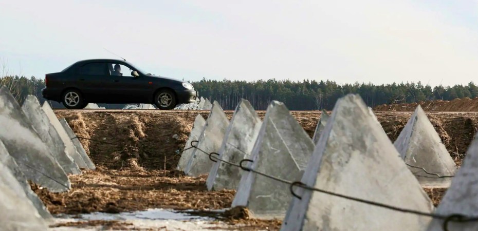 Galvenajā attēlā atkal varat apskatīt „pūķa zobus“ jeb betona piramīdas, kuras krievi izmanto tanku aizkavēšanai. Šis attēls jau reiz šeit bija publicēts un tas uzņemts Krievijā. Pie Brjanskas. (TASS)