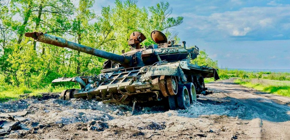 Attēlā krievu tanks Ukrainas frontē (DN)