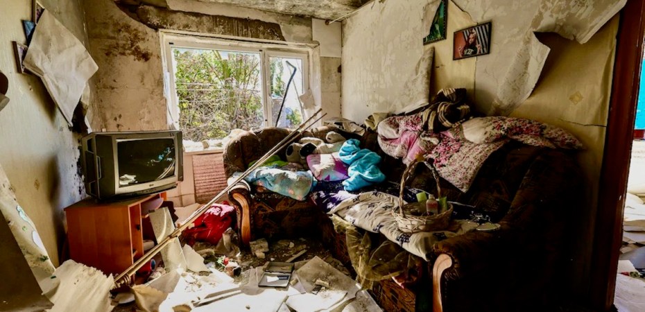 Attēlā dzīvoklis pēc krievu uzlidojuma Velika Novosilka (Ukrainā). AP.