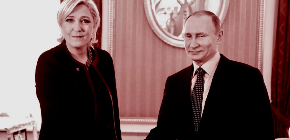 Franču nacionālistu līdere Marina Lepena ir sena Putina stipendiāte, nekautrējas no tā ka Kremlis viņai regulāri dod naudu un ir gatava apgalvot, ka sankcijas pret Krieviju sagraušot Francijas ekonomiku. Viņas sabiedrotais, 1958.gadā dzimušais politiķis Therijs Mariani (Thierry Mariani) ir nākamais šīs līnijas sekotājs: sākumā vadīja domnīcu Parīzē, kuru finansēja Kremlis un tagad sēž Briselē kā Eiroparlamenta deputāts. Tieši viņš ļoti aktīvi darbojās pret Ukrainu gan Briselē gan Parīzē un tikko nosauca Volodimiru Zeļenski par „mafijas bosu, kas nodarbojas ar valsts terorismu“ (TASS). Trešais Kremļa pilārs Briselē ir Žans Liks Šafhauzers (Jean Luc Schaffhauser), kurš jau 2014. gadā palīdzēja Lepenai „nopludināt“ naudu no Kremļa (20 miljonus eiro) viņas partijai Francijā. Savu privātmāju Strasbūrā viņš pašlaik izīrējis krievu diplomātam. Šie cilvēki kalpo Putinam un labi nopelna. Loģiski, ka viņi izplata tālāk franču valodā vajadzīgo Putina „stāstu“ un atrodas virkne ļaužu, kas viņiem notic.