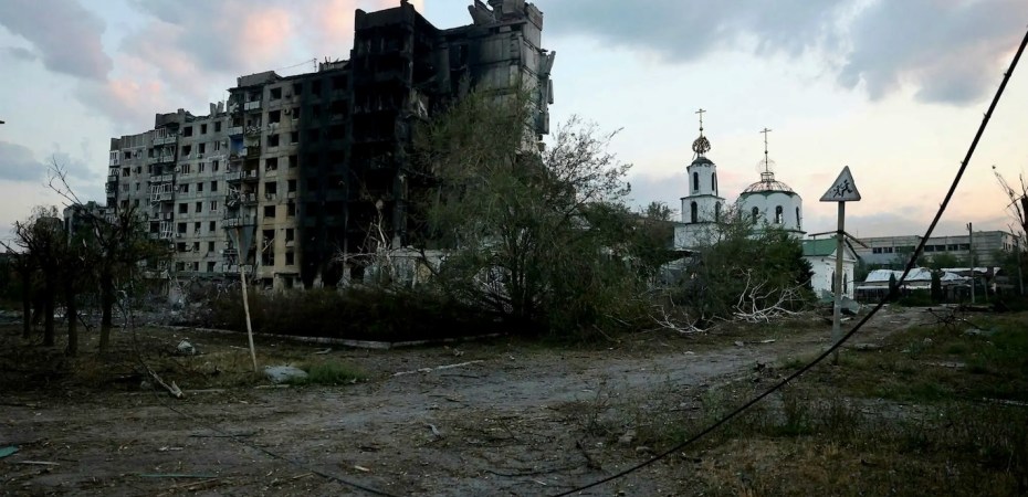 Attēlā redzama Ukrainas pilsēta Torecka, kas ir viena no vissmagāk cietušajām pilsētām Ukrainas frontes zonā šovasar. Sagrautas, degošas ēkas, izdegušas automašīnas un gruvešiem piebērtas ielas. (AFP) Neskatoties uz to, ka pilsēta atrodas piecu kilometru attālumā no frontes, šī pilsēta salīdzinoši ilgi bija saglabājusies. Taču šovasar Krievijas spēki sāka pastiprināt uzbrukumus Toreckai (Doņeckas apgabalā) un pašlaik pilsēta tiek sagrauta.