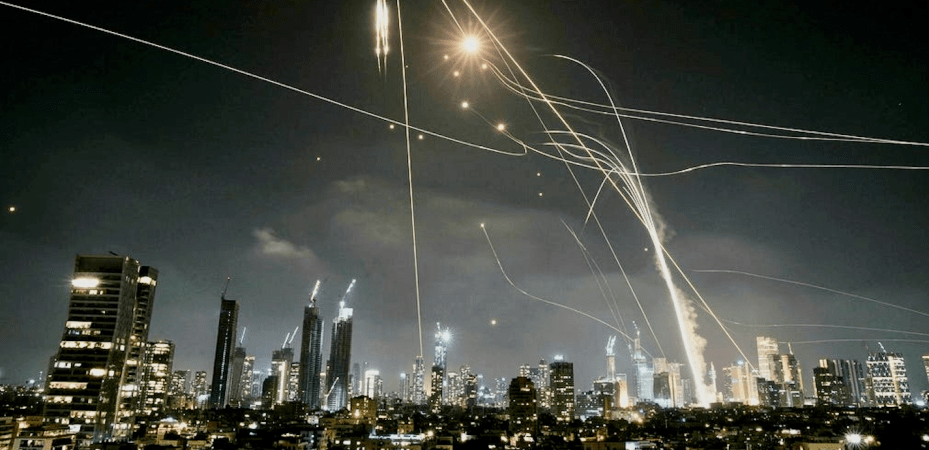 Attēlā Telaviva. Izraēlas aizsardzības spēki notriec raķetes virs galvaspilsētas piektdien, 13. jūnijā. Foto: Leo Correa/AP