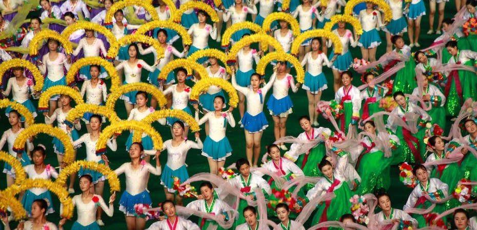 Attēlā korejiešu iecienītie masu pasākumi – dejošana stadionā (ABC News, CNN)
