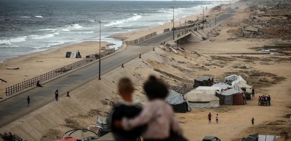 Attēlā Gazas sektors, palestīniešu zona. Gaza ir šaura zemes josla, kas 54 km garumā un 12 km platumā stiepjas gar Vidusjūru.