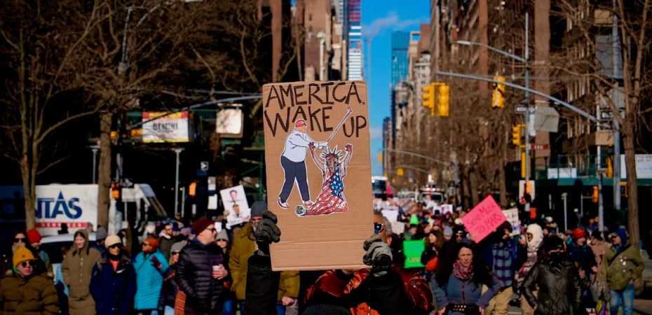 Komentārs ilustrācijai: protesti Ņujorkā pret Donaldu Trampu. Autore: Jūlija Demarē – Nikhinsone /AP