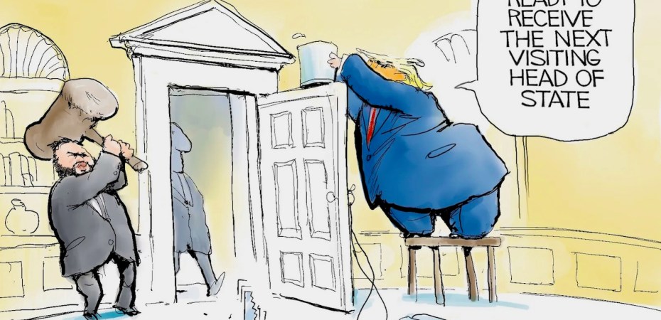 Pievienoju ilustrāciju, kas raksturo nākamo Zelenska vizīti Baltajā namā. Tramps ar Vensu ir gatavi pieņemt Ukrainas prezidentu.