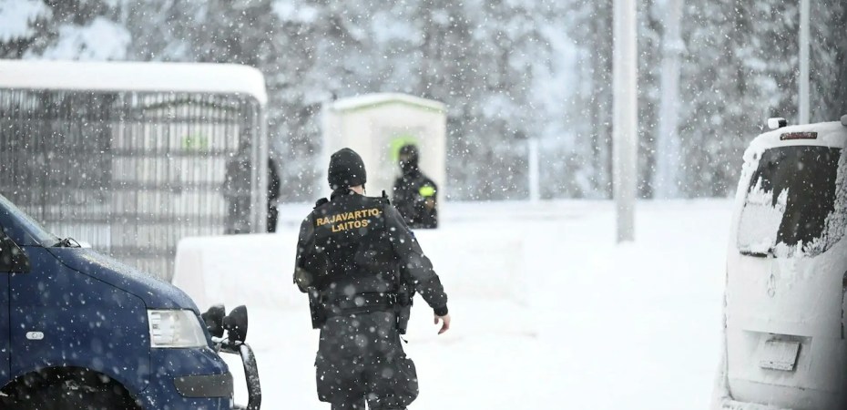 Attēlā Somijas robežpolicija Raja-Jooseppi robežkontrolē starp Krieviju un Somiju. Foto: Emmi Korhonen/AP