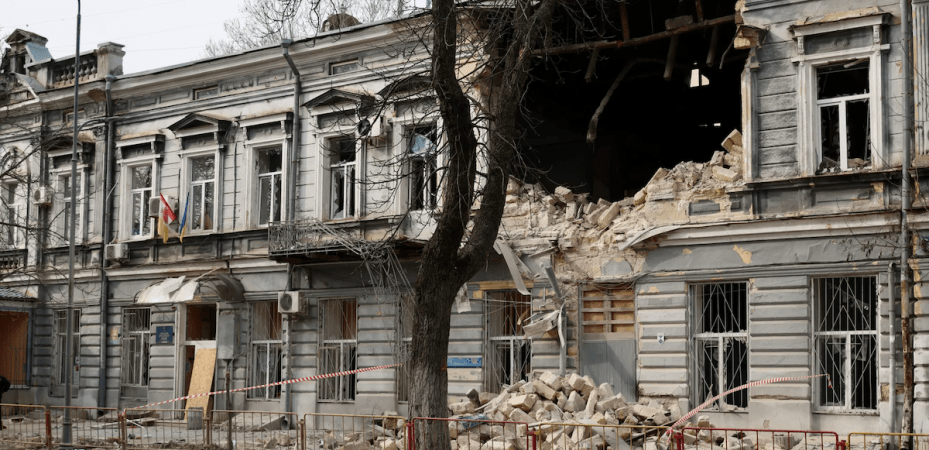 Ilustrācija: krievu iznīcinātā universitātes Juridiskās fakultātes ēka Odesā, 2026. gada 21. februāris/Tims Meļņikovs