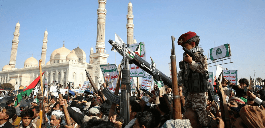 Ilustrācija : hutiešu atbalstītāji protestē pret Izraēlu Jemenas galvaspilsētā Sanā, 2025. gada oktobrī. Foto: Hamza Ali/TT