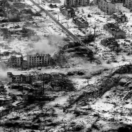Sabojātais kuģis un iznīcinātā Marjinka